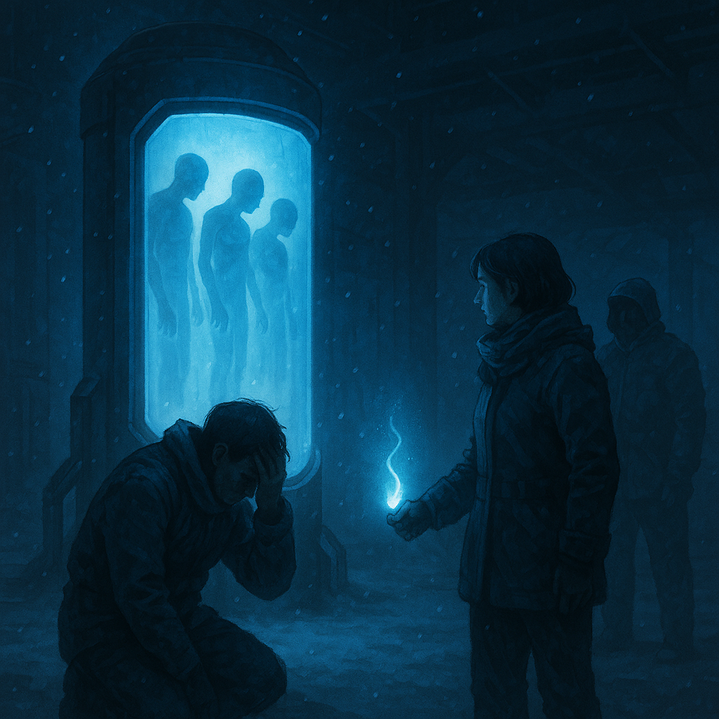 The crew hides five anomalous clones while delivering the rest, bluffs their way through Fex’s suspicion, investigates the clones’ unsettling origins, and then barely survives a drill-space catastrophe triggered when the clones suddenly awaken and declare, “We are seen.”